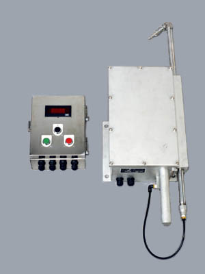 ルから噴射して湿紙の両端を切り落としています。 近年、「坪量・水分制御システム」が多く導入され、その制 御のための数値として、ワイヤパート上の紙幅データが必要と なってきました。 そのため、従来はモノサシでノズルの位置を測り、データを システムへ手入力してきました。これは、手間がかかるだけで なく、危険な作業や間違いが伴いました。 この製品は、このノズル位置を測り、4〜20mAの計器信 号として出力するとともに、ノズルの位置をリモート操作がで きるようにしたものです。 水滴や水飛沫の中で使用するため、そのシールには独特の工 夫がされています。 |