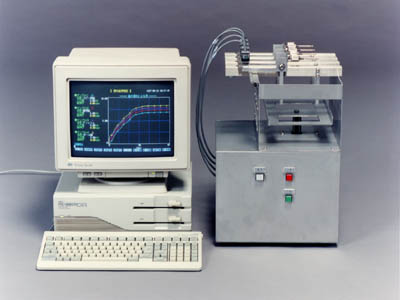 この測定装置は、試料を瞬時に水に浸して、紙
